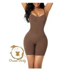 Our Mocha snatcher is a beautiful brown body shaper thats made up 77% nylon and 23% spandex for stretching and comfort. The mocha snatcher is a Full-body bodysuit that targets your belly, waist, and thighs, flattens your stomach and creates a sleek line from belly to the thighs.